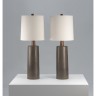 Jane & Gordon Martz (XXe) Paire de lampes à poser Céramique, noyer, laiton et textile Édition Marshall Studios Gravées 'Martz' Date de création : années 1950 H 105 x Ø 40,5 cm