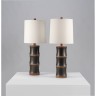 Jane & Gordon Martz (XXe) Paire de lampes à poser Céramique, noyer, laiton et textile Édition Marshall Studios Signées 'Martz' Modèle créé dans les années 1960 H 106,5 × Ø 40,5 cm