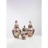 On y joint une autre potiche en porcelaine Imari à décor de pruniers en fleurs sur fond de motifs de pivoines. XIXe siècle