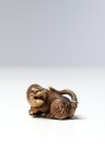 Netsuke en ivoire, tigre parmi les bambous, la tête tournée vers la gauche. Signé Kohosai. (Infime egrenure). H. 2,5 cm Elephantidae SPP Poids : 25,8 gr Expert Cabinet Portier