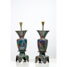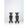 JAPON - Epoque MEIJI (1868 - 1912) Paire de vases balustres en cuivre et émaux cloisonnés reposant sur une base ajourée quadrangulai...