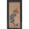 JAPON - XIXe siècle Ensemble de deux peintures, encre et couleurs sur papier et soie, une représentant une femme marchant sous la pl...