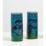 Paire de vases rouleau en porcelaine émaillé polychrome.