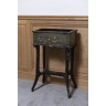 Jardinière en bois noirci et laqué vert à décor peint et burgauté de fleurs et papillons reposant sur des pieds cambrés réunis par une tablette d'entrejambe. H 80×L 50×P 26cm (Accidents)