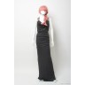 JAY AHR ROBE drapée en jersey viscose et soie gris souris, bretelles et dos nageur rebrodés de cannetilles, perles et paillettes acier T. S Quelques micro fils tirés