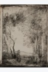 Sept clichés-verre (Delteil 59). Sept épreuves sur papier salé, essais pour l'édition de Maurice Le Garrec (Quarante clichés-glace de Corot - Daubigny - Delacroix - Millet - Rousseau tirés sur les plaques provenant de la Collection de M. Cuvelier, Paris, 1921). Importantes mouillures (3) et manques (3).