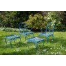 Jean-charles Moreux (1892-1956), dans le goût de Partie de mobilier de jardin à deux fauteuils et deux bouts de canapé. Modèle créé vers 1940 83 x 50 x 45 cm 37 x 43 cm Relaqué bleu
