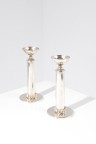 Paire de bougeoirs Métal argenté et métal argenté martelé Signature incisée 'J. Després' sur l'envers de chaque Modèle créé vers 1950 H 27,5ר12,5cm
