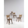 Jean Touret (1916-2004) et les Artisans de Marolles (XXe) Suite de quatre chaises Chêne travaillé à la gouge, rotin et fer forgé Marquage à chaud 'MAROLLES' sous chaque assise Date de création : vers 1955 H 79 × L 44 × P 36 cm