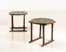 Jens H. Quistgaard (1919-2008) Modèle 453 Paire de tables d'appoint Palissandre et céramique de Kronjyden Edition Nissen Langå Estampille RN Date de création : années 1960 H 47 × Ø 49 cm Bibliographie : Richard Nissen cataloge, 1966