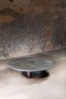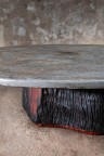 Table basse Pièce unique Bois de fer et pierre andésite de Java Monogrammée en creux ‘JAS’ sur la base Date de création: 2025 H 36 × Ø 140 cm