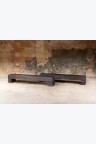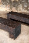 Paire de bancs Pin maritime brûlé Monogrammés ‘JAS’ en relief sur la tranche Date de création: 2020 H 41 × L 240 × P 39 cm