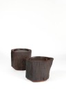 Paire de tables d’appoint Bois de fer et fer martelé Monogrammées ‘JAS’ en creux Date de création: 2025 H 50 × L 57 × P 47 cm H 48 × L 65 × P 48 cm