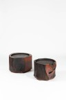 Paire de tables d’appoint Bois de fer et fer martelé Monogrammées ‘JAS’ en creux Date de création: 2025 H 40 × L 50,5 × P 48 cm H 40 × L 60 × P 56 cm