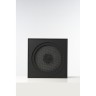 Disque tramé en rotation, métal, lumière, dans un emboîtage en bois