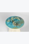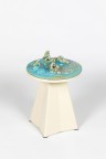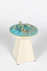 Grès émaillé et feutre sur Tabouret Métallique de Jean Prouvé - Sculpture et tabouret dissociables - Œuvre unique