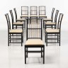 Josef Frank (1885-1967) Ensemble de dix chaises Bois peint et bambou Edition Svenskt Tenn Date de création : vers 1980 H 96 × L 44 × P 42 cm Bibliographie : - Christopher Long, Josef Frank, Life and work, The University of Chicago Press, Chicago, 2002. Modèle similaire reproduit p.235, 236 - Kristina Wängberg-Eriksson, Svenskt tenn : Josef Frank och Estrid Ericson, en konsthistorisk studie, Stockholm, 1985. Modèle similaire reproduit, p. 85