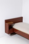 Lit Tôle pliée laquée, textile et métal nickelé Modèle créé en 1936 H 94×L 200×P 133cm Provenance : Mobilier créé pour le Sanatorium Geoffroy Martel de Janville au Plateau d'Assy, Haute Savoie