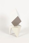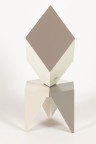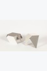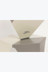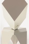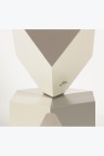 Géoptic est un objet multiusage inspiré par la géométrie d'Isamu Noguchi. Il prolonge le plateau de la Prismatic Table en formant un hexaèdre, créant une illusion de perspective. Ce volume, avec une face polie miroir, évoque une formation minérale de pyrite. Assemblé par magnétisme, il peut être déplacé et utilisé comme une seconde table basse, associant esthétique et fonctionnalité.