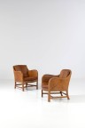 & Edvard Kindt-Larsen (1901-1982) Paire de fauteuils - Modèle N°4396 Cuir, bois et laiton Édition Rud. Rassmussen Modèle créé dans les années 1930 H 78 × L 65 × P 80 cm