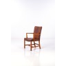 Kaare Klint (1888-1954) Modèle no. 5999 Nørrevold de la série 'Red Chairs' Fauteuil Acajou, cuir et laiton Date de création du modèle : 1939 Date de création : vers 1940 Edition Rud. Rasmussen A/S, Copenhagen, Denmark. Monogrammée, étiquette de l'éditeur RUD. RASMUSSENS/SNEDKERIER/45 NØRREBROGADE/KØBENHAVN et numéroté à la main H99×L64,5×P53cm