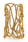 Important bracelet manchette en métal doré, formé de fils torsadés