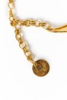 Collier torque en métal doré orné de trois cabochons violet, ambre et rose Signé Diamètre intérieur : 12 cm