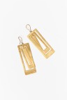 Paire de boucles d'oreilles en argent doré, retenant en pendant des rectangles emboités Non signées Dimensions : 10 x 2,8 cm