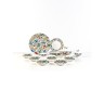 Service à thé en porcelaine émaillée blanche décorée de frises de personnages. Ce service est composé de 6 tasses accompagnées de leurs sous-tasses, d'une théière, d'un pot à sucre, d'un pot à lait, de 6 assiettes et d'un plat de présentation Edition à 500 exemplaires, celui-ci N° 418 Soit 22 pièces au total de dimensions variables Un certifiat d'authenticité de Villeroy & Bosch et du Keith Haring Estate sera remis à l'acquéreur Très bon état