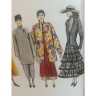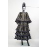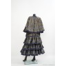 ENSEMBLE en taffetas de soie mélangée plissé acier appliqué de rubans satinés bleu et en velours gris souris : CORSAGE boutonné & JUPE volantée étagée