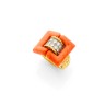 KUTCHINSKY Années 1970 Originale bague en forme de boucle de ceinture en or jaune 18k (750‰) granité ornée de corail sculpté et d'un pavage de diamants au centre Signée, numérotée 76518, poinçonnée Tdd : 50 Poids brut : 12,4 g