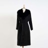 LOUIS FERAUD. Manteau en daim noir et col renard.