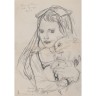 Léonard Foujita (1886-1968) Jeune fille au chat, 1950 Dessin à la mine de plomb Signé, daté et situé Paris, 14.7.50 en haut à gauche, signé, situé et daté en bas à gauche Paris 1950 23,5 x 16,5 cm Provenance : Vente Succession Kimiyo Foujita, Cornette de Saint-Cyr, Paris, le 26 mars 2013, lot 294