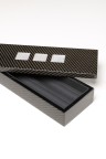 Plumier Fibre de carbonne anthracite laqué 9 couches et 3 cristaux Lalique motif "Perle" 28 x 28 mm (le cristal) 5 x 23,5 x 8,5 cm Dans son emballage d'origine.