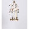 Lanterne à trois lumières en bronze doré et verre à motif de noeuds de ruban, chutes de draperies et clochettes. Style Louis XVI H 67 x L 29 cm