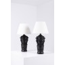 Lauritz Adolf Hjorth (1831-1912) Paire de lampes Céramique émaillée et textile Édition Bornholm Estampille d'éditeur Modèle créé vers 1900 H 44,5ר 25cm (Pied) H 29ר 40cm (Abat-jour) Hauteur complète : 75cm