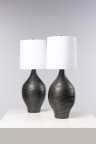 Paire de lampes de table Céramique, laiton et textile Édition Design Technics Modèle créé dans les années 1950 H 80ר 28cm