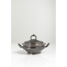 Légumier rond couvert en argent sur piédouche, la bordure à contours et moulures de filets, anses feuillagées, couvercle en doucine ...