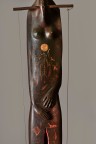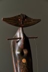 Bois sculpté, gravé, peint, assemblé et cordes en métal et nylon