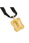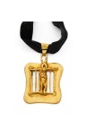 Pendentif "Saint Laurent" en bronze doré monté sur ruban en velours noir Monogrammé Dimensions : 8 x 5 cm