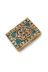 Poudrier rectangulaire à décor floral en bronze doré partiellement émaillé