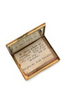 A l'intérieur un miroir biseauté et un petit message de l'artiste "Si cette glace se casse, ne soyez pas inquiète. Vous n'aurez pas sept ans de malheur. Croyez-en Line Vautrin."