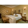 Cabecero, cortinas, pareja de mesillas, pareja de lamparas de sobremesa y banqueta rulos