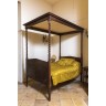 Lit à baldaquin en bois naturel mouluré et tourné, montants à colonnes torses. Style Louis XIII H 230 ×L 203 ×P 130 cm
