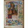Livre d'heures, selon l'usage de l'Église de Bourges. - Manuscrit. Bourges. Vers 1475. Petit in-8, basane ancienne avec dos à 4 nerfs moderne et coins refaits. Manuscrit enluminé à l'usage de Bourges, sur parchemin, de 125 feuillets non foliotés (109 x 76 mm, justification 5,5 x 4,1 mm). Réglure à l'encre rouge. 17 longues lignes par page. Réclames. Composition. Un bifeuillet (contregarde sup. + f. A), I6-II6 (f. 1-12), III8 (f. 13-20) IV9(8+1) (f. 21-29 avec le feuillet 22 ajouté) V-XV8 (f. 30-117), XVI6 (f. 118-123), un bifeuillet (f. B + contregarde inf.). Les ff. 76v-77rv, blancs à l'origine, portent des additions, qui se poursuivent dans la marge inf. des ff. 77v-78r (fin XVIe s.). Contenu. f. 1-12v : Calendrier discontinu, selon l'usage de Bourges : Guillaume, arch. et conf., le 10 janvier (en rouge). - Austregisile, év. le 20 mai (en rouge), et son octave. - Saint-Ursin, év. le 29 décembre (en rouge) et Translatio sancti Ursini, le 9 novembre. On notera enfin la Liberatio Iherusalem, le 15 juillet (en rouge). f. 13-18 : Les évangiles. f. 18-21v : Obsecro te. f. 22-47 : Heures de la Vierge : matines (f. 22-38v), laudes (f. 38v-48r) f. 48v-49v : Heures de la Croix. f. 50 : Heures du Saint-Esprit. f. 51-75 : Heures de la Vierge : prime (f. 50-56v), tierce (f. 56v-60v) ; sexte (f. 60v-67v) ; nonne (f. 67v), vêpres (f 68-75), complies (75-76). f. 78-93v : Psaumes de la pénitence, avec litanies (f. 88v-93). f. 94-123v : Office des morts selon l'usage de Bourges. La peinture. LA DECORATION DE CE MANUSCRIT A ETE EXECUTEE DANS L'ENTOURAGE DE JEAN COLOMBE. 6 grandes peintures ornent ce manuscrit : 1) la femme pour laquelle ces heures ont été exécutées (f. 21v) ; 2) L'Annonciation (f. 22) ; 3) La Crucifixion (f. 47v) ; 4) La Pentecôte (f. 49) ; 5) David priant (f.77) ; 6) Job sur son tas de fumier est secouru (f. 93). Elles sont insérées dans de belles bordures de motifs végétaux (feuilles d'acanthes bleues et or, fleurs rouges et roses, petites feuilles vertes) dans lesquelles s'ébattent des animaux ou oiseaux imaginaires. Le reste de la décoration consiste en initiales au début des grandes sections (peintes en bleue sur fond rouge rehaussées à l'or de motifs végétaux), initiales plus petites au début des psaumes, prières, etc. (sur un fond brun, initiales et motifs floraux portés à l'or). Les autres initiales sont alternativement rouges et bleues. Rubriques. Quelques bouts de ligne notamment pour les litanies. Vers 1470, Bourges a été le lieu d'une intense activité d'enlumineurs, et de nombreux livres d'heures y ont été produits. L'inauguration de l'université, en 1467, est probablement à l'origine de l'implantation de libraires, et la réussite de l'enlumineur, Jean Colombe, une incitation pour beaucoup. Cette effervescence produit un ensemble de livres très typés. C'est ainsi que la peinture dans notre manuscrit la Pentecôte, introduisant les Heures du Saint-Esprit, se retrouve quasiment identique dans un manuscrit, dont la peinture est attribuée à Jean Colombe. Provenance. Les notes portées sur les gardes permettent de situer ce manuscrit à la fin du XVIe s. entre les mains d'une famille Martin de Romorantin (f. Av, contre-plat inf.), puis d'une famille Leconte aux XVIIe-XVIIIe s. (f. Bv), et enfin au XIXe ou XX siècle. Aux possesseurs du château de Melleray. Ce manuscrit est resté dans son été d'origine. Il est bien complet et en bon état malgré d'anciennes mouillures à plusieurs feuillets et de petites usures à un enluminure : l'Annonciation.