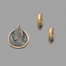 Lot composé d'une paire de créoles en or jaune 18k (750‰) et d'un pendentif orné d'une pièce de monnaie à l'antique en argent, montée sur or 14k (585‰) Poids brut : 9,9 g