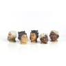 Lot de cinq petits pots à tabac en biscuit polychrome représentant : japonaise, indien et créole. Allemagne, Thuringe. Petits accidents.