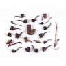 Lot de vingt-et-une pipes en bruyère sculptées. Diverses époques et sujets : taureau, souris, chien, éléphant, soldat, chaussure…. En majorité de Saint-Claude.