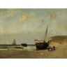 Louis BENTABOLE (1820-1880), Barque échouée sur la plage Huile sur toile signée en bas à gauche 39 x 52 cm