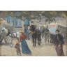 Louis Hayet (1864-1940) Paris, sur les boulevards, circa 1892 Huile sur papier fixé sur panneau Signée en bas à gauche 18 × 26,5 cm